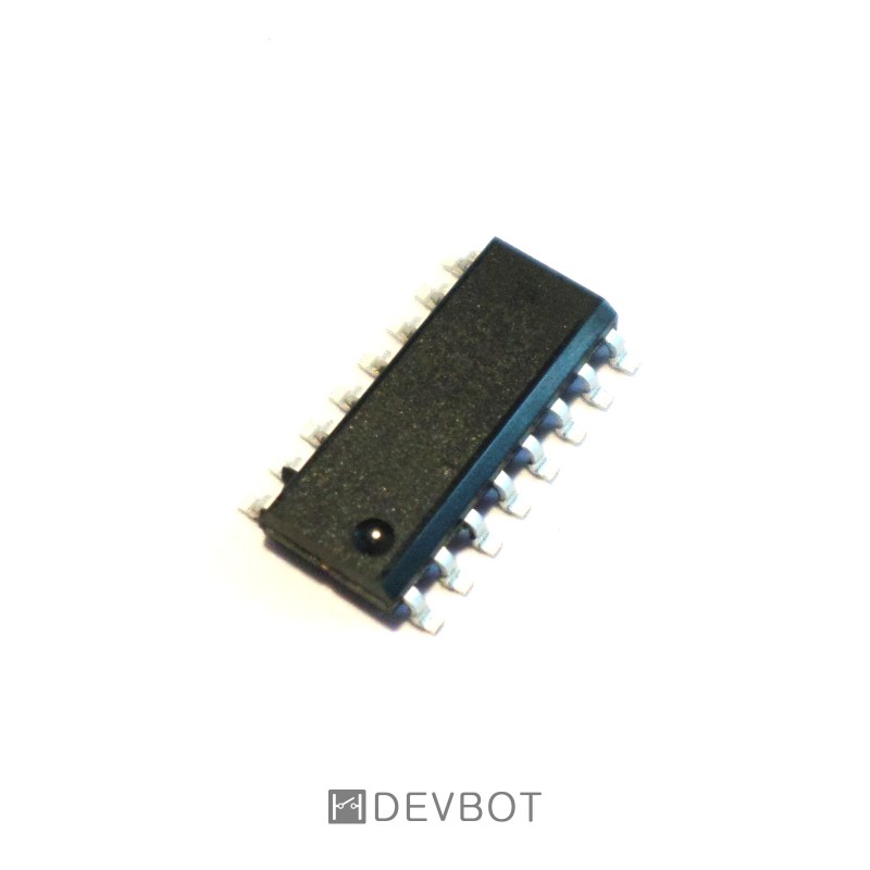 Registre à décalage 8 bits 74HC595D, version CMS en boitier SOP-16.