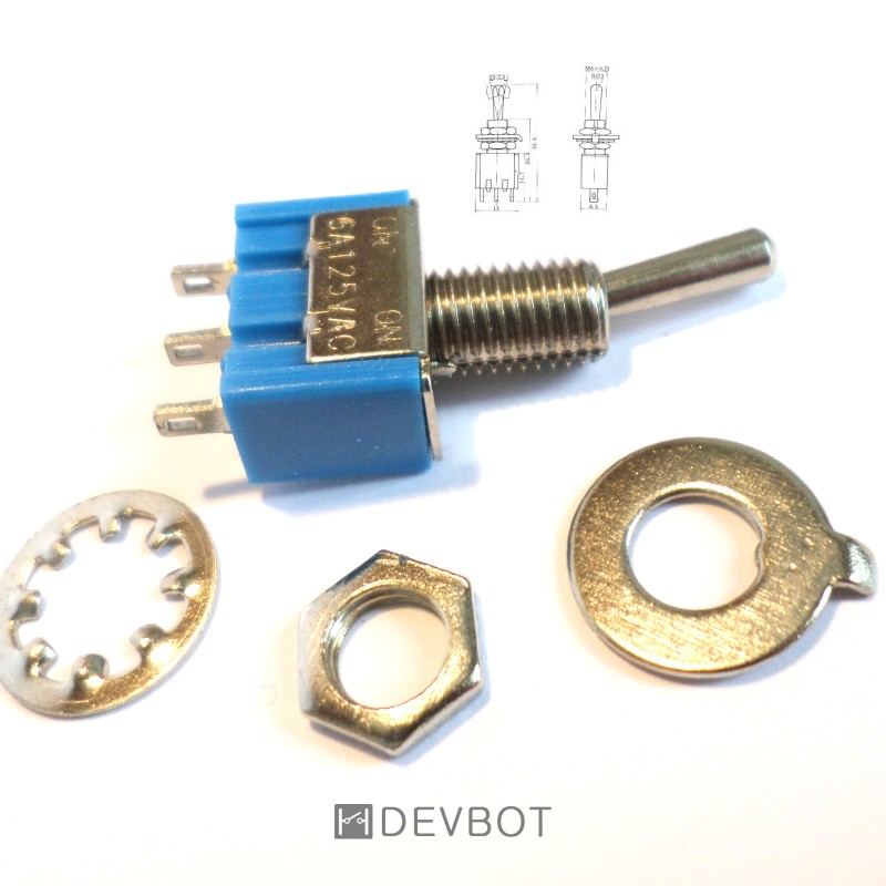Interrupteur à bascule 6A 125V, MTS102 Bleu.