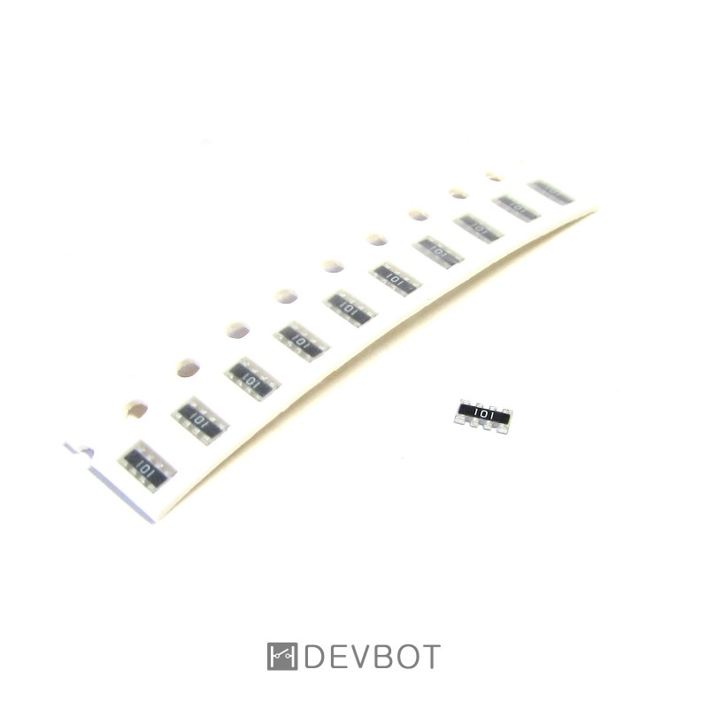 Réseau de 4 résistances individuelles 100 Ohm au format CMS 0603.