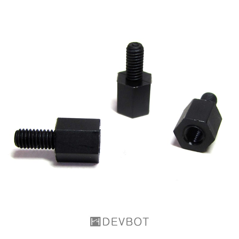 Entretoise hexagonale, Mâle/Femelle, M3 6mm en Nylon noir.